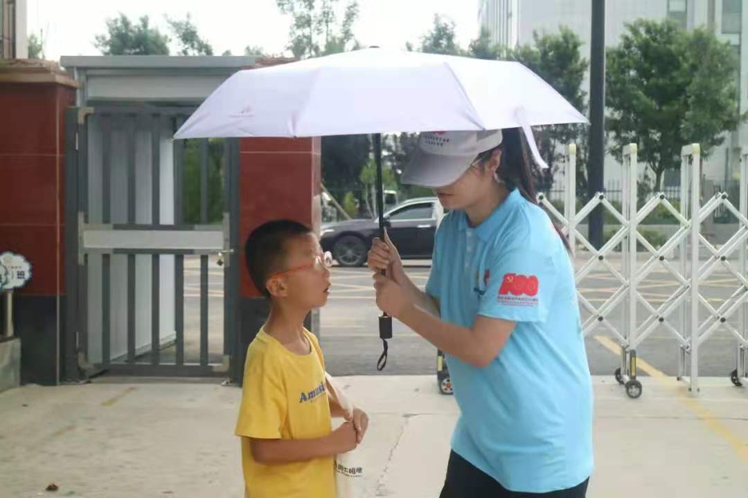 早上8点,漫天的乌云遮住了太阳的光芒,急促的雨线如密不透风的网,从天空中直射而下。伴着如烟如雾的蒙蒙细雨,学生们陆陆续续来到了学校,志愿者们早已在学校门口举伞迎接。