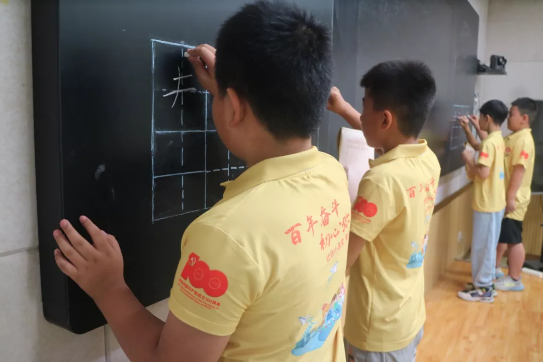 手握笔杆,腰板挺直,纸上的汉字如同学们一般认真、端正,教室里静得只能听见笔与纸摩擦的声音。看到黑板上志愿者老师的板书,强劲而有力,饱满而方正,同学们的心中也泛起了涟漪,希望经过自己的不断练习,能写一手好字,成为书法大家。