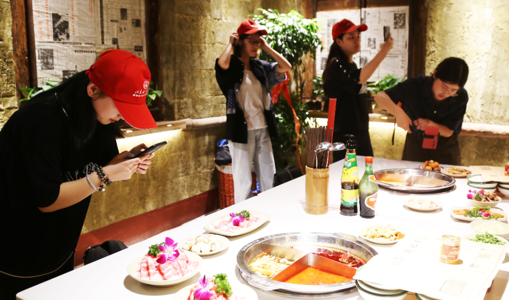 队员们选取“陈艳红火锅店”作为餐饮业的代表进行了采访。店长表示店铺即将开设抖音账号,并打算由专人负责运营。自开业后通过顾客的抖音视频宣传,店里的人流量有所增长,作为经营者,他们对于新媒体的传播方式很感兴趣。