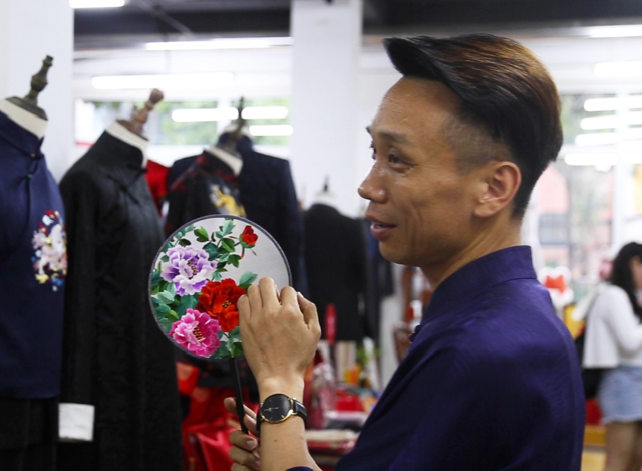 “戴记鲁绣旗袍”店是“印象济南”传统手工艺商家中的代表。在调研活动搜集资料时,队员们就多次在抖音APP看到过与这家店铺相关的视频,并留下了深刻的印象。7月12日实地考察时,队员就抖音传播方面的问题对店主进行了采访,了解到该店铺虽未开设抖音账号,但游客拍摄的视频对他的店铺有很多展示,对传统手工艺起到了一定的传播效果。受此启发,他认为以后可以探索如何运用短视频更好地展示传统手工艺作品。