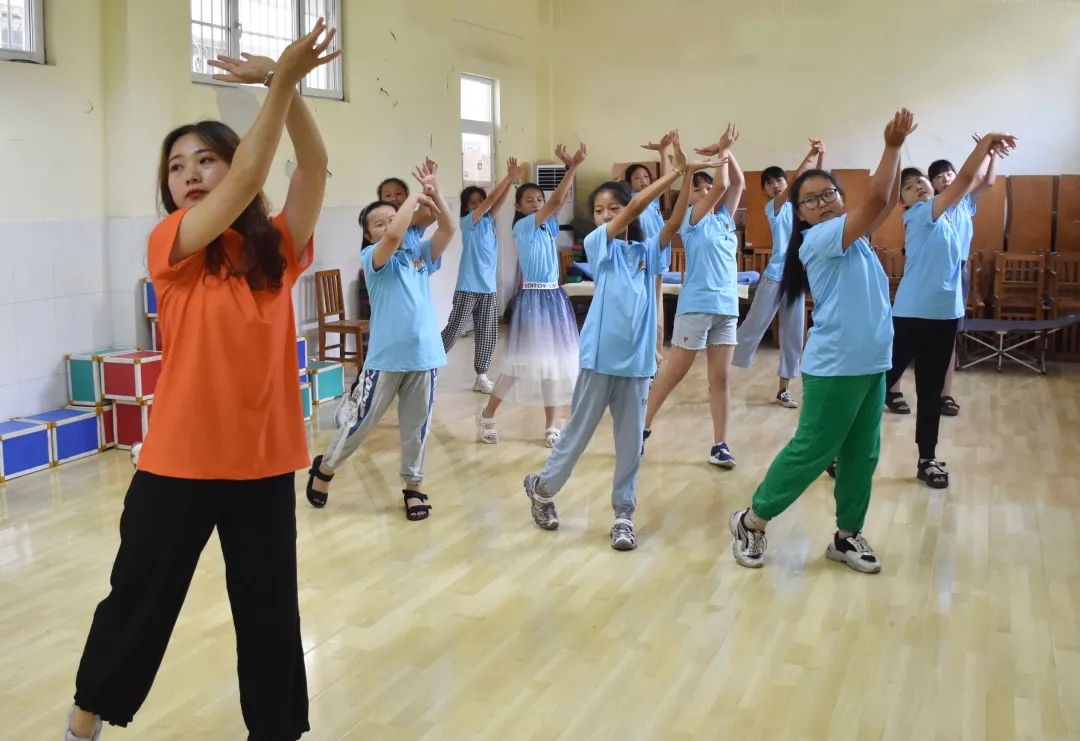 为深入贯彻习近平总书记“七一”重要讲话精神,进一步认识当代青少年所肩负的历史使命和共青团、少先队所承担的重大政治责任,为党做好新时代青少年工作。“爱之翼”文化宣传志愿服务团的队员们开展特色舞蹈、音乐课程。开课伊始,队员们播放了精心准备的舞蹈编排歌曲。听着歌曲欢快悦动的旋律,看着孩子们整齐划一、充满朝气的舞蹈,队员们的眼神里亮起了憧憬的光芒。由于孩子们的舞蹈基础不同,队员们将整首歌曲拆分成几个简单的小节,带领孩子们一起学习不同的舞蹈动作。随着“五六七八”的口号声响起,学生们的目光紧紧追随着实践队员,经过反复的练习,孩子们逐渐熟悉了每一个舞蹈动作。伴着歌曲声,学生与老师亲密互动,课堂氛围轻松愉悦,小小的舞蹈室里充满了欢快的艺术气息。