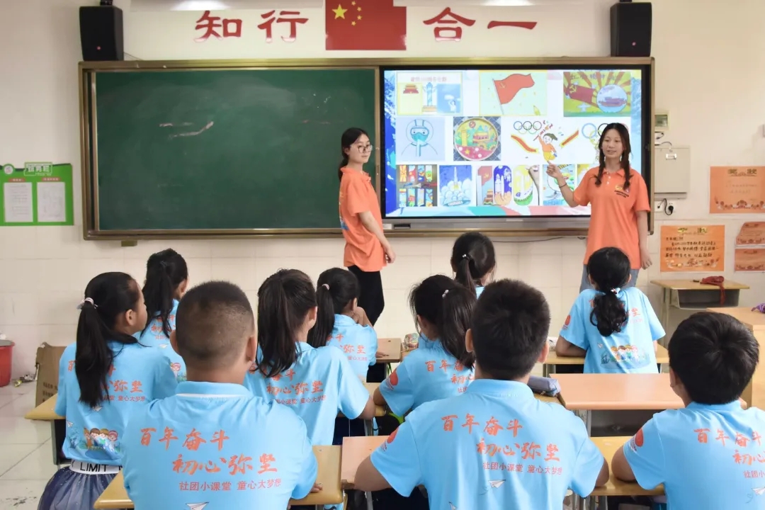 为更好地引导孩子们在学党史、悟思想中传承红色基因、坚定理想信念、磨砺实践本领,7月18日,山东女子学院教育学院“爱之翼”文化宣传志愿服务团的队员们于济南市市中区小庄小学开展了美工、声乐、舞蹈等特色艺术课堂,让思政课程与艺术课程同向同行,相互支撑,全面落实立德树人根本任务,为伟大复兴铸魂育人。