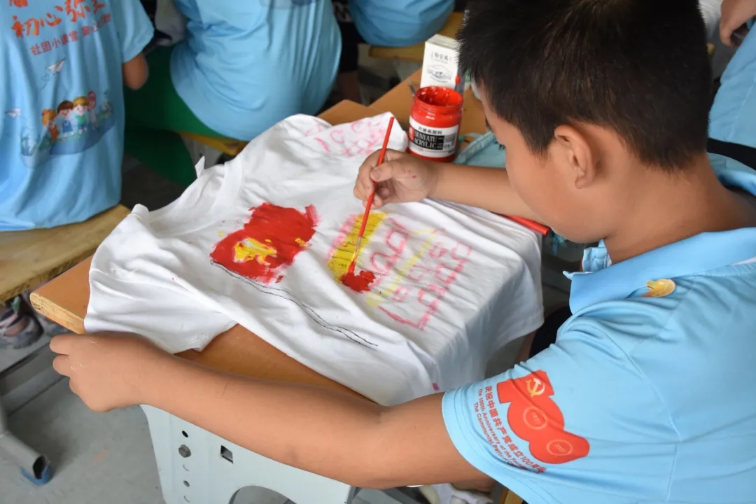 为了更好地普及艺术教育,激发孩子们的艺术想象力,7月18日, “爱之翼”文化宣传志愿服务团的队员们开展了“我以我手绘未来的”的创意美工课程。队员们提前准备白色的衣服,让孩子们在上面画出自己的想法,把自己想表达的情感,想说的话通过绘画的形式表现出来。孩子们全身心投入到绘画过程中,一笔一划的勾勒出未来的模样。课堂上,她们着重于美术绘画技能的培养,让孩子感受生活,体验生活,尽情享受无限创“艺”的惊喜和乐趣,激发孩子内在情感,进行感性教育,培养其创造力,提高其综合素质。孩子们纯真的笑容,志愿者们关爱的眼神,无一不体现课堂的效果和师生之间的深厚情谊。