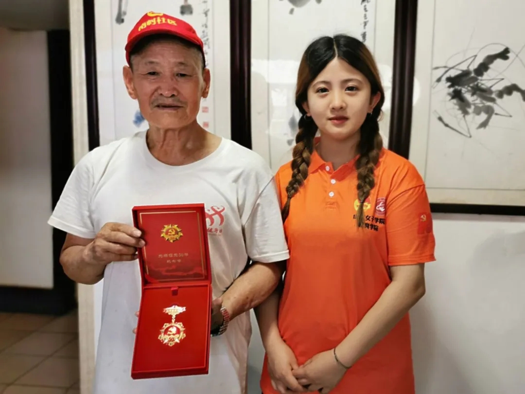 值此中国共产党百年华诞之际,队员聂珲走访探望了荣获“光荣在党50年”纪念章的老党员娄宝岭同志。探访中,老党员娄宝岭同志声情并茂地给队员们讲述了他们入伍时的艰苦历程,对现在国家的繁荣富强感到骄傲。队员聂珲也畅所欲言,结合自己的大学生活经历,与老党员娄宝岭同志进行了深入地交流。“通过走访慰问老党员,我更加深刻认识到了中国共产党的伟大。作为新时代的青年,我会谨记老一辈革命者不畏艰险、浴血奋战的初心,把红色基因传承好。”队员聂珲感叹到。