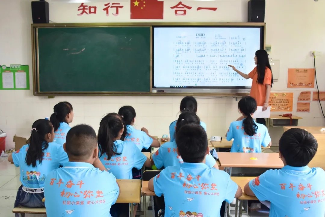 伴随着悠扬的旋律,孩子们的音乐之旅启程。在之前的发音训练之后,孩子们初步掌握了发音技巧,他们用激昂的旋律为党的百年华诞送去真诚的祝福。队员们根据孩子们不同的嗓音条件因材施教、寓教于乐,从合唱基础知识入手,带领学生精准调整音高,激发歌唱兴趣,培养歌唱自信,课堂氛围轻松愉快。通过声乐课程的学习,让孩子们能够掌握发声技巧、歌唱呼吸与共鸣,针对歌曲内容,把呼吸方法、真假声连接、节奏、律动、肢体语言、舞台表现力、音乐语言性融入到实际教学中,让孩子们能够声情并茂地演唱歌曲,自信地歌唱。