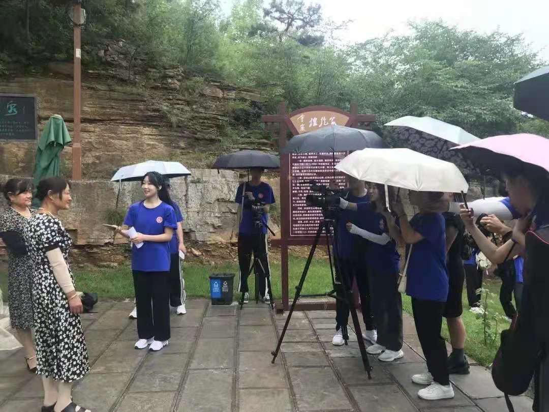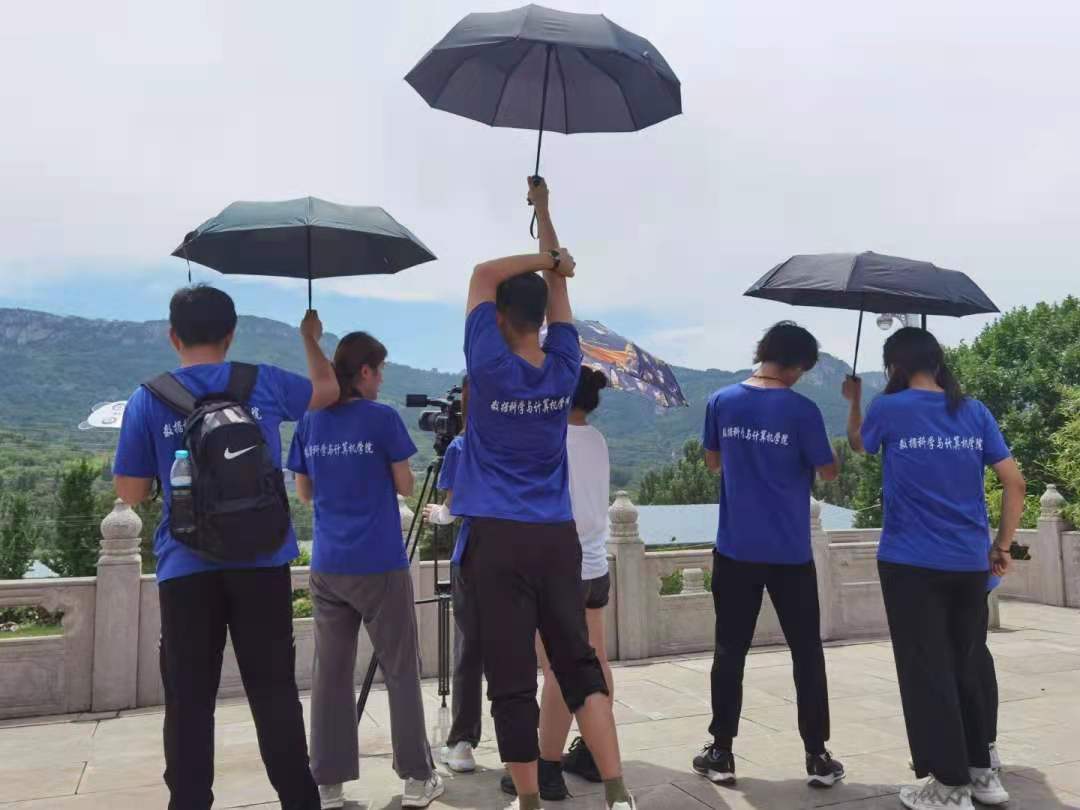 实践第四天,为推动在新媒体浪潮下的景区宣传工作,以团队成员为演员,以灵岩大佛山多地为背景,头顶着炎炎烈日,组织开展了多段趣味视频的拍摄,队员们皆沉浸其中,积极学习舞蹈、一遍遍练习动作,争取做到整齐划一,拍摄6段格局风格的趣味视频,供新媒体的推广,在这期间也赢得了许多村民们赞许。回校后,服务队共同整理素材,最终出色地完成了多段场景转换的拍摄以及剪辑工作。