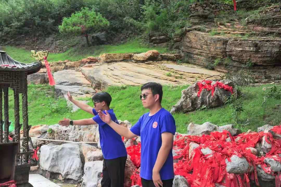 实践第三天,服务队和灵岩村村委完成了接洽工作,在乡村振兴专员、灵岩村支部书记助理谭悦带领下先后对檀抱泉、儿童乐园、观景台、滴水崖、灵岩村等景点进行取景,为后期宣传积累素材,随后对村民、景区工作者、景区建设者等人进行采访,深切体悟到他们逢山开路,遇水搭桥,不畏艰难的灵岩大佛山精神。更加了解村支部书记马永奇带领村民秉承“绿水青山就是金山银山”理念,依托大山开发旅游产业致富的故事。