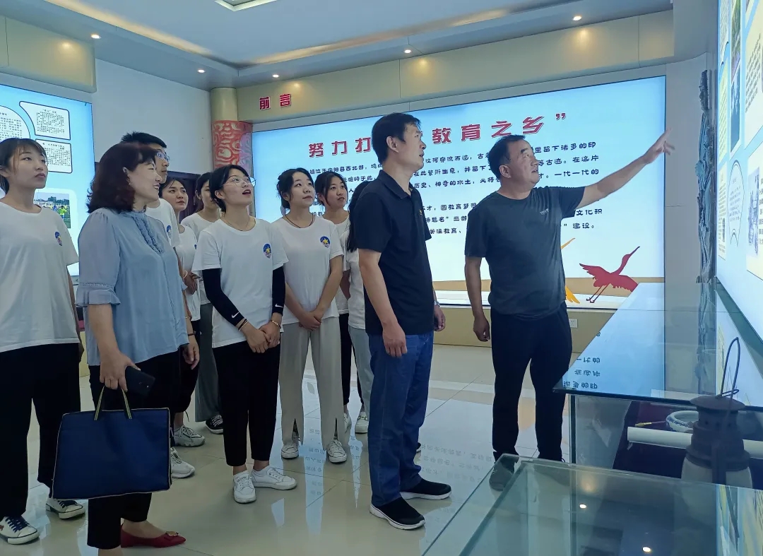 讲座结束后,在鹤山镇中心幼儿园园长窦海峰的带领下,董院长一行和支教队员们一同参观了鹤山教育博物馆,馆内展示了许多鹤山镇优秀人才和优秀教师的事迹,激励鹤山学子和教师努力学习工作。馆内详细介绍了鹤山镇传承颜子和武训精神办学,成立了颜子教育发展促进会,开展学网建设,在全镇上形成了良好的学习教育氛围,努力打造“教育之乡”。董院长对鹤山镇的教育教学理论给予了高度的赞赏,鼓励支教队员们永葆积极上进,认真求学的精神。