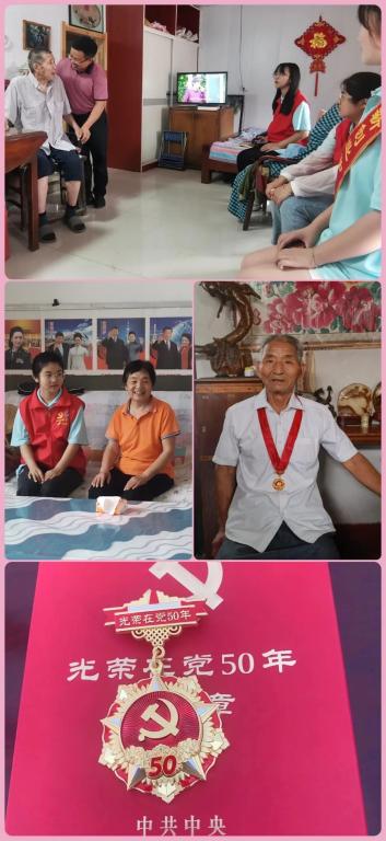 为深入学习中国共产党历史,弘扬爱国主义精神, 党史学习实践团的同学们走访看望了西苏村获得“光荣在党50年”纪念章的老党员石志舜、石志芬和刘秀青三位老党员,听老党员讲党史故事、同忆革命情怀。