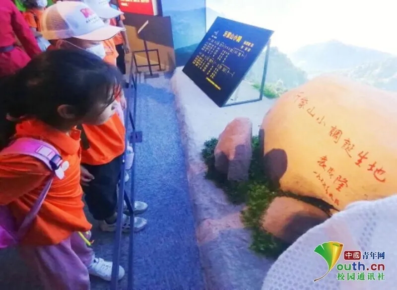 图为孩子们观看《沂蒙山小调》相关历史资料。