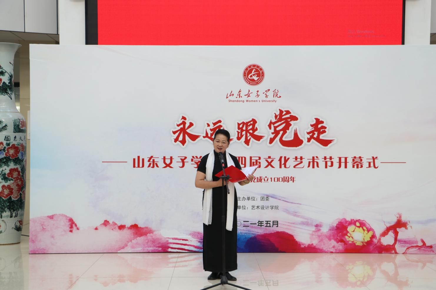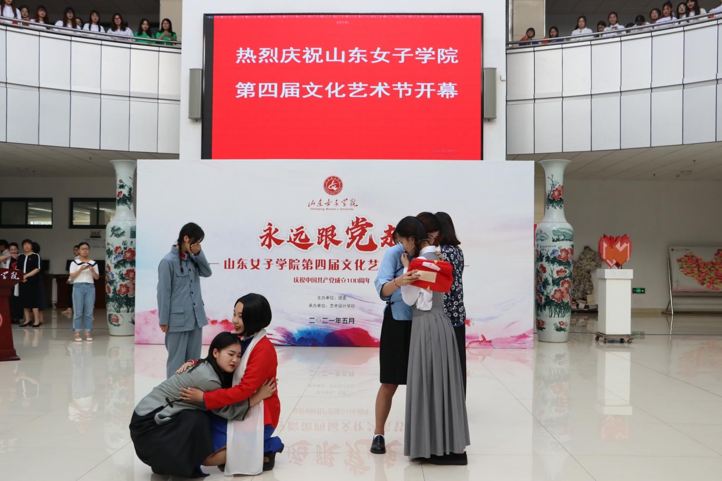 百年心向党,奋进正当时。5月27日下午,“永远跟党走”山东女子学院第四届文化艺术节在学校图书馆A座大厅开幕。学校领导班子和师生代表800余人参加开幕式,副院长侯素美主持开幕式。