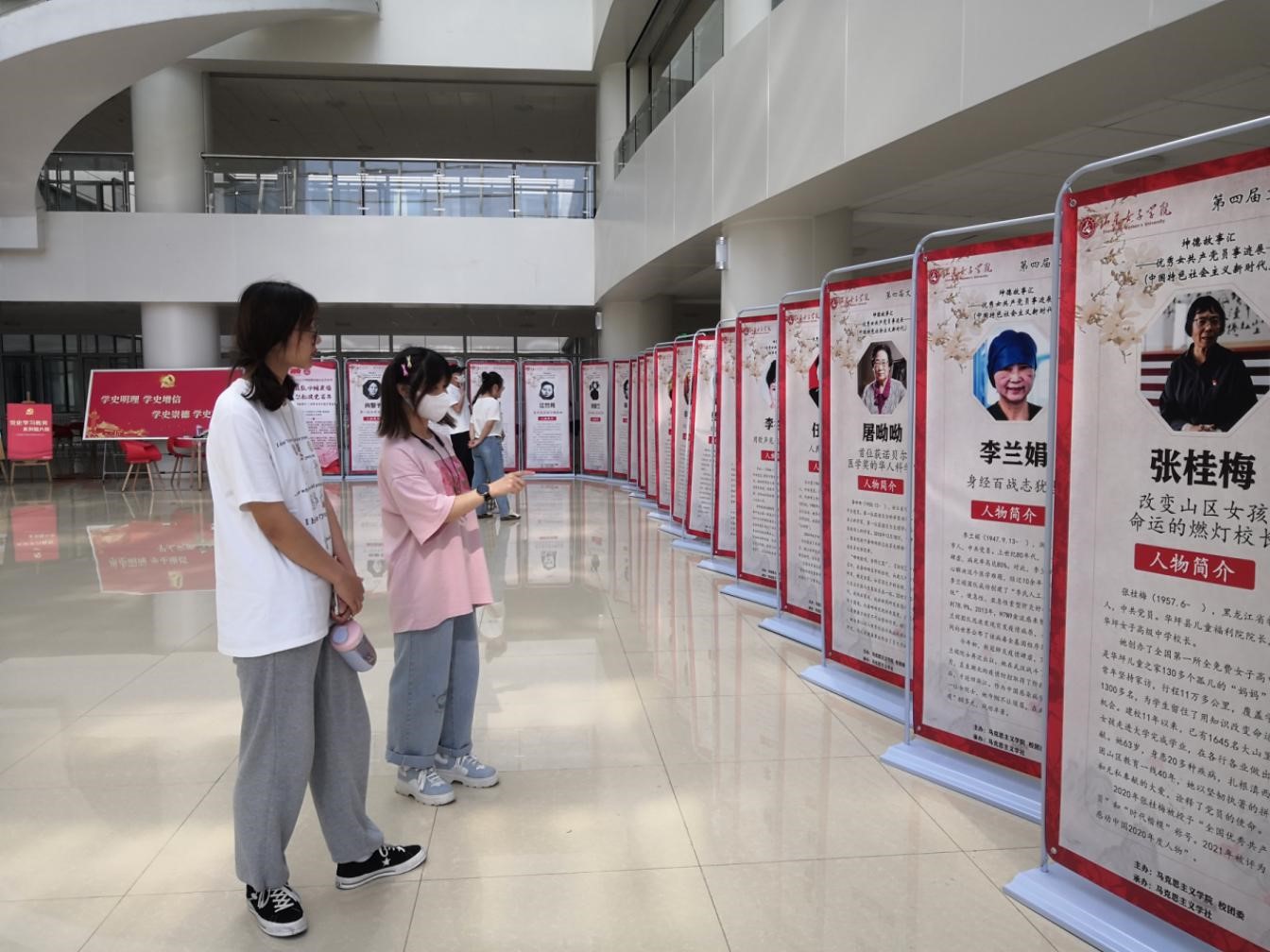 “致敬1921”人物造型快闪在开幕式现场上演。学校师生用“快闪”的形式,再现王尽美、刘胡兰、李大钊、江姐、宋庆龄等革命人物形象,重温革命历史,共同缅怀先烈。艺术节特邀嘉宾、宋庆龄特型演员刘新星朗诵了宋庆龄的作品《向中国共产党致敬》,文真、诵切,令在场观众动容;李大钊表演表演者带领青年学子不约而同的挥舞手中的小国旗,高声呼喊:打倒卖国贼……引起现场强烈共鸣。开幕式在舞蹈《芳华》中收尾,师生们分批参观“永远跟党走”庆祝建党100周年主题艺术展、优秀女共产党员事迹展,观看“建党百年映初心”剧目展演。