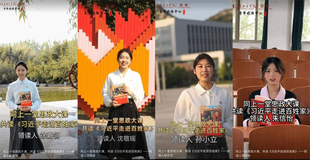 统一思想是推动工作的根本保障。由校学生会主席团成员和各学院学生会主席组成的学生委员会,建立起“凡会必学”制度,形成“凡是开例会,必先组织学习习近平总书记重要讲话精神”的工作惯例,以自身为表率,引导学生会成员关注国家政策和社会发展,提升理论素养;依托学生会功能型团支部,与学院学生会、社团、班级等团支部联合开展主题学习,线下定期开展读书会、线上推出“同上一堂思政大课”共读《习近平走进百姓家》领学视频等,“身边的领读人”一经推出,获得同学们的广泛关注,推出10期微视频点击量近3万;在“青马工程”培训班中设置“女大学生领导力”培训班,由学校团委老师组成教研组,为学生会全体成员开设《女大学生领导力》选修课,从自我判断、自我管理、自我提升三方面培养全局思维,增强大局意识,在理论学习中夯实为学生服务的思想根基。