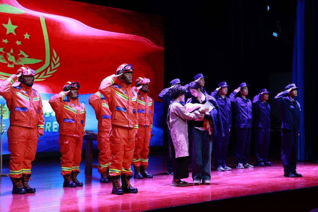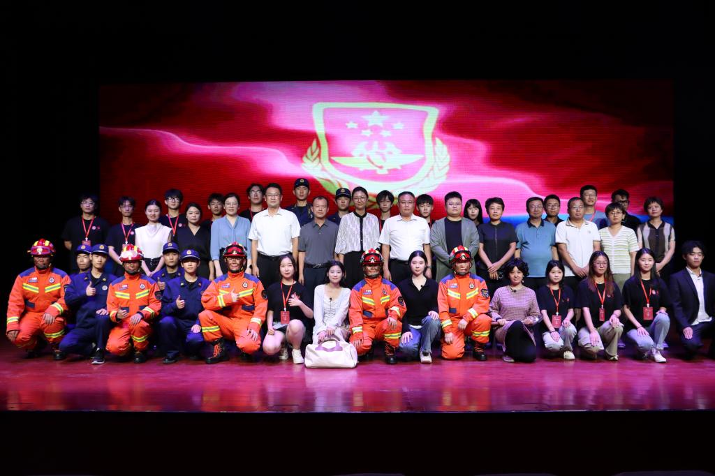 《别哭,我最爱的人》是由学校“青年创业导师”吕文铮导演的山东省首部原创消防救援题材话剧。全剧共四场,12幕,通过生动的剧情和鲜活的人物形象,展现消防员在火场中的英勇无畏、救死扶伤的崇高品质,同时深刻描绘了他们背后的家庭情感和社会责任。演出现场,观众们的心情伴随着剧情发展不断跌宕起伏,饱满的人物形象赢得了观众们的热烈掌声,感人至深的情节更令众多观众潸然泪下。这场演出不仅是一次艺术的呈现,更是一次心灵的洗礼和责任的传递,在观众们经久不息的掌声中话剧缓缓落下帷幕。