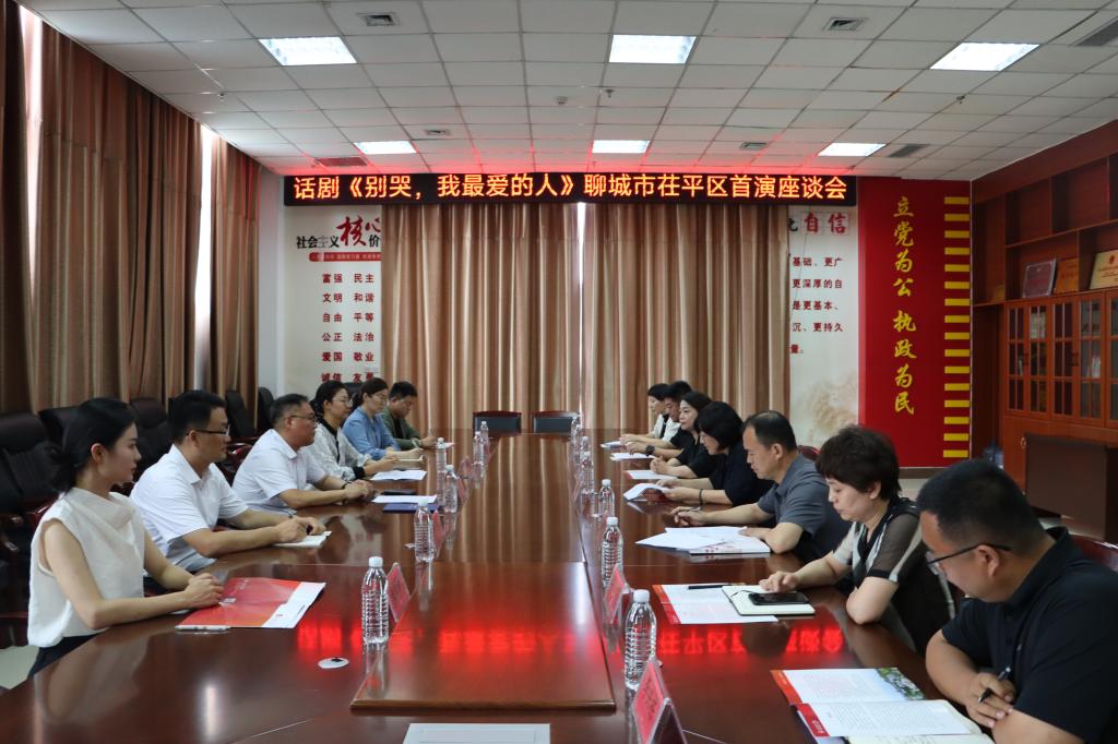 演出前,龙希利一行看望并慰问演职人员,并与茌平区开展交流座谈会。座谈会上,高红平对龙希利一行表示热烈欢迎,简要介绍了茌平区的文化特色和产业发展。龙希利介绍了学校办学历史、学科建设、人才培养、美育建设等方面的基本情况。他指出,学校多年来积极将美育融入“大思政”格局,希望以此次话剧首演为契机,能够搭建起校地合作的新桥梁,深度融合促发展,开创共赢发展新局面。