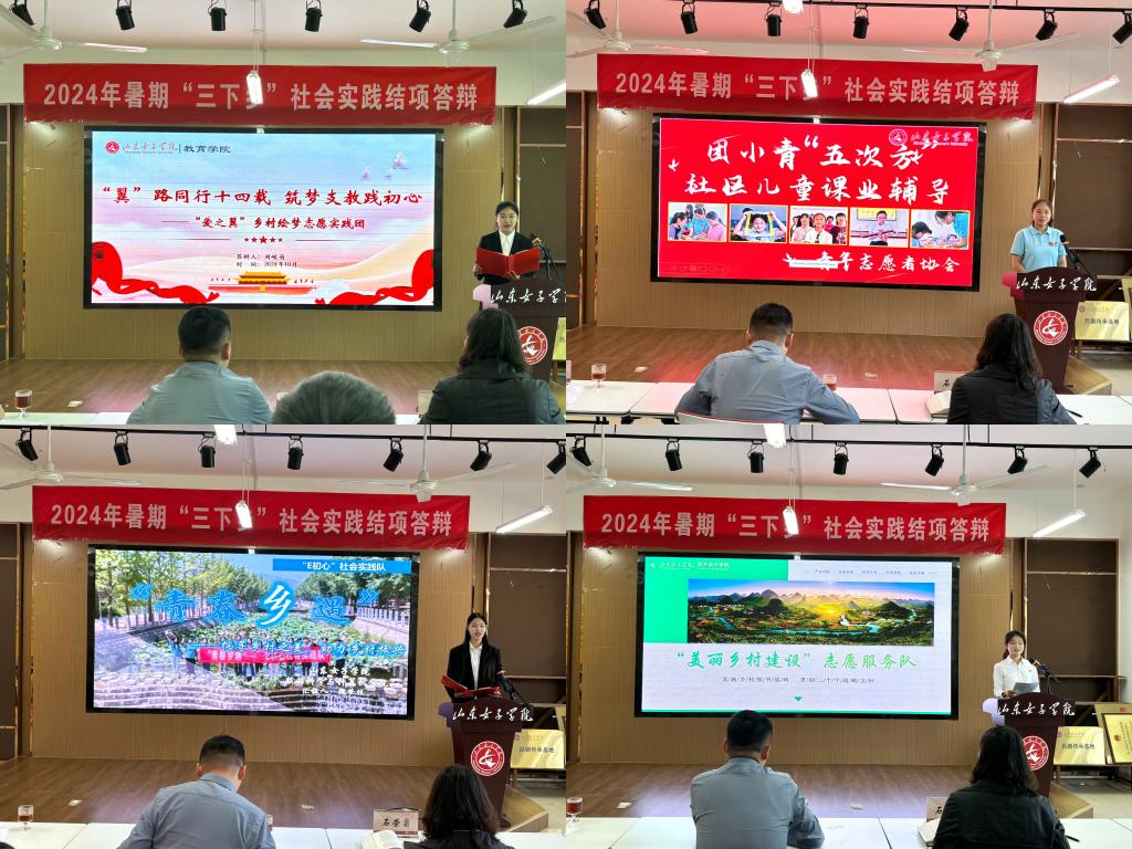 10月10日下午,由校团委主办、各学院团总支和学生会承办的“青春为中国式现代化挺膺担当”2024年暑期“三下乡”社会实践结项答辩顺利举行。山东工艺美术学院团委书记杜鹏、山东交通学院团委副书记杨丽娜、山东女子学院马克思主义学院副院长石荣菊担任评审专家,29支校级立项团队代表进行结项答辩,2024级新生代表到场观摩学习。