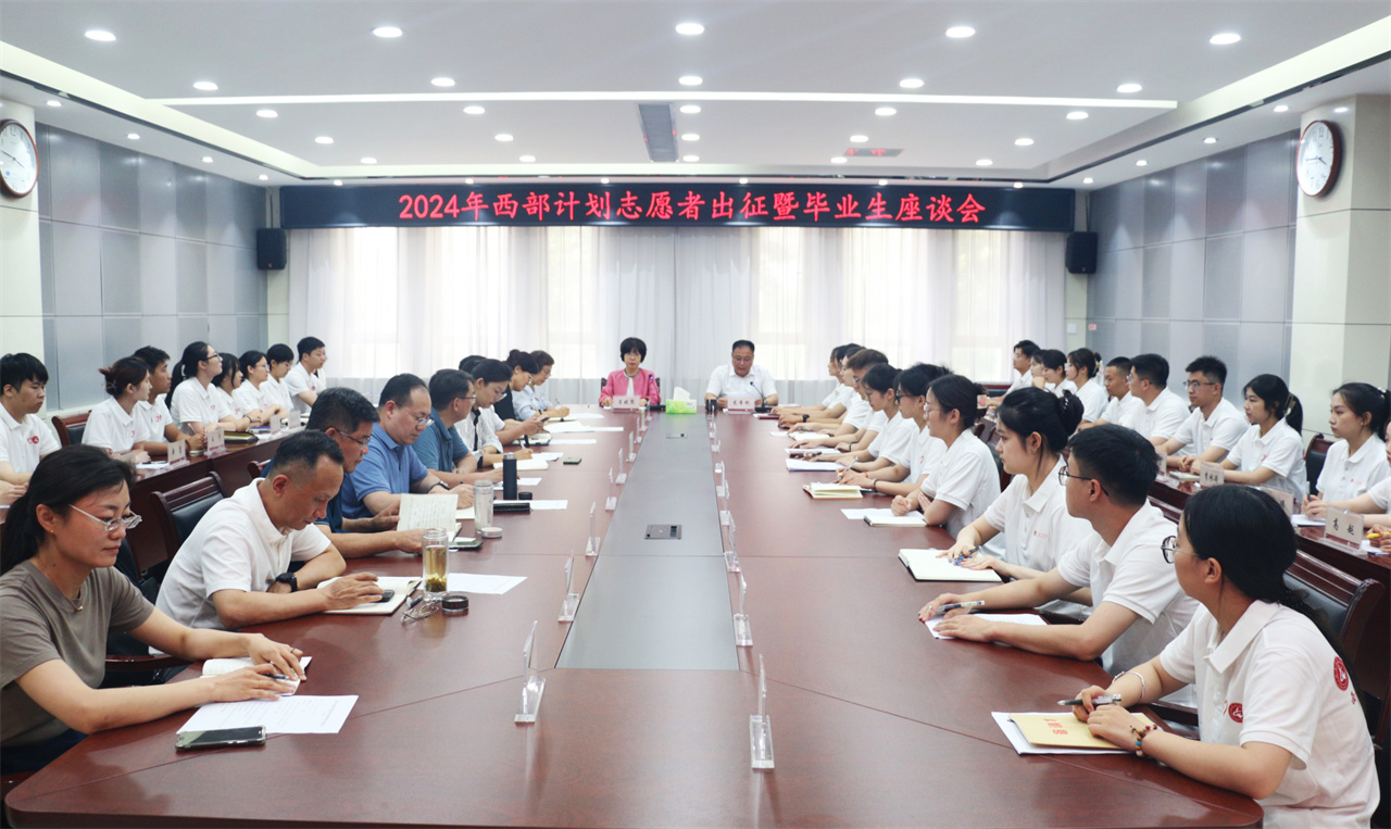 6月19日下午,学校2024年西部计划志愿者出征暨毕业生座谈会在第三会议室召开。学校党委书记吕晓黎出席会议并讲话。统战部、纪委、学生工作部(处)、团委、教务处、招生就业处、保卫处、后勤(基建)管理处、合作发展处等单位负责人,2024届优秀毕业生代表及参加西部计划的志愿者参加座谈。会议由党委副书记龙希利主持。