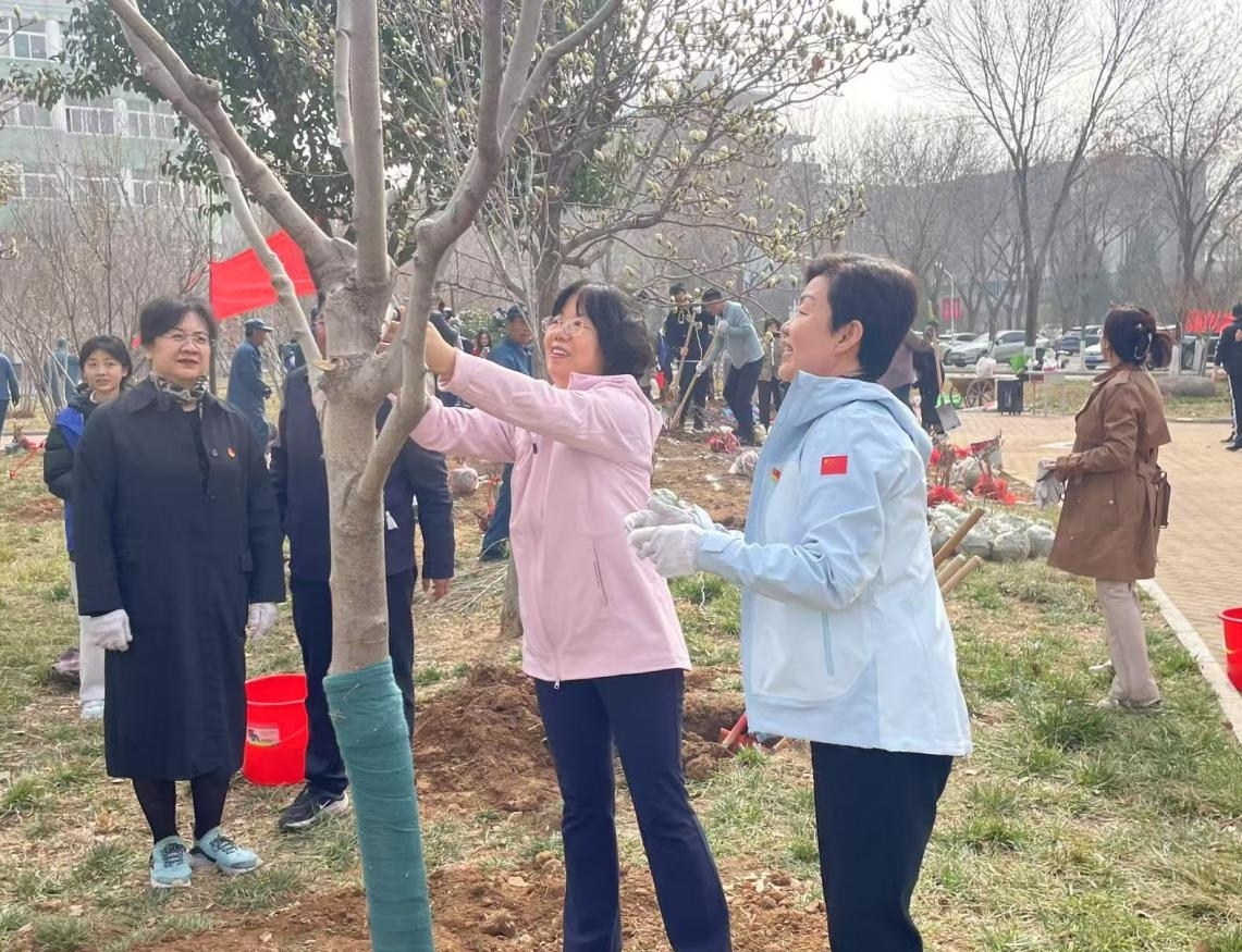党委委员、副校长田立新在植树节启动仪式上倡议师生共同践行“在女院、知女院、爱女院、建女院”的庄严承诺,携手以"红妆"添"绿意",共"筑"生态梦",为学校生态文明建设赋入绿色新动能。