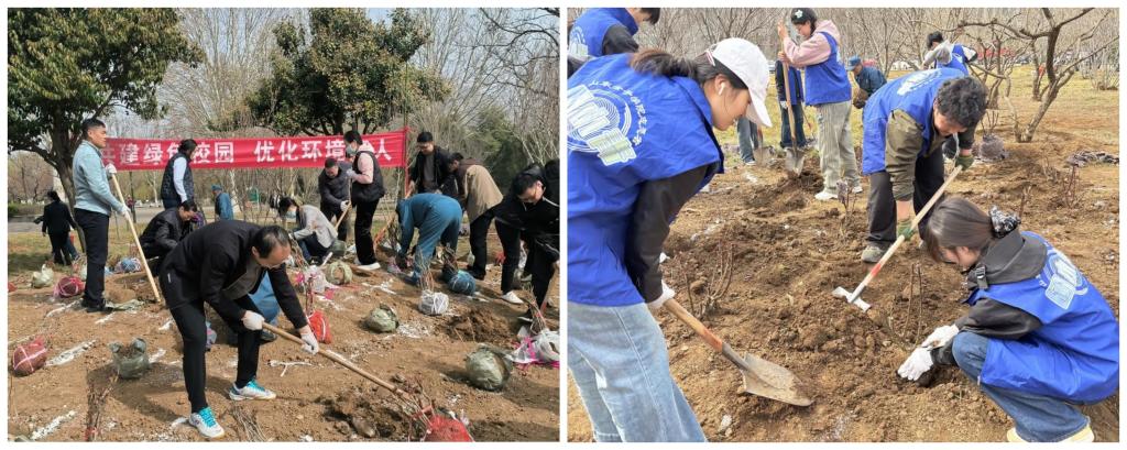 校领导和师生们共同种下象征坚韧与希望的玉兰、木槿、牡丹、芍药、玫瑰和月季等苗木。大家分工合作,挖坑放苗、扶正培土、取水灌溉,新栽植的玉兰、木槿、玫瑰和月季等迎风挺立。
