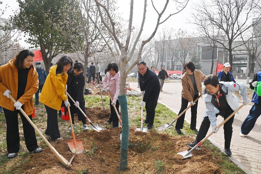 春风送暖催新绿,植树添绿正当时。在第47个植树节到来之际,校领导吕晓黎、李光红、龙希利、刘恩允、杨恩红、李缨、田立新带领各部门教职工和各学院师生在好媛广场开展“履行植树义务,共建美丽校园”植树活动。