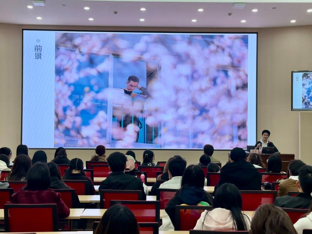 4月7日下午,2025年春季学期第二期(总第54期)“与青年学生面对面”摄影交流会在求真楼报告厅举行。大众日报记者毕胜受邀参加,学校融媒体中心、青年媒体中心学生代表参与活动。