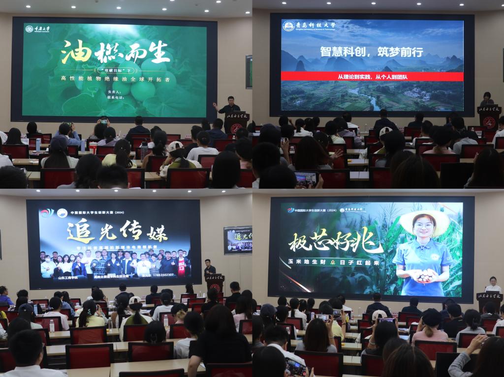 5月14日下午,由山东省教育发展服务中心主办、学校承办的中国国际大学生创新大赛国赛金奖团队巡回宣讲在求真楼报告厅成功举办。省教育发展服务中心党委委员、副主任孙培东,学校党委副书记龙希利出席活动并致辞。省教育发展服务中心相关业务负责人,青岛科技大学、山东工商学院金奖项目团队,学校相关职能部门负责人,各学院分管竞赛工作负责人、创新大赛项目团队师生代表参会。