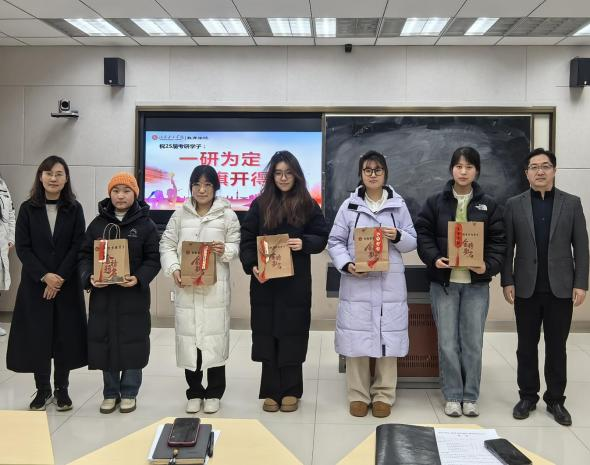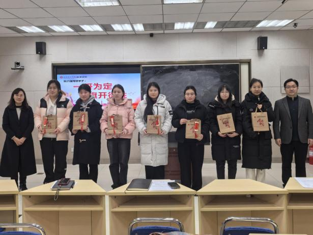 最后,学院领导老师和考研学生代表合影留念,共同定格这一难忘的时刻。考研学生们不仅感受到了学院的关怀和支持,也增强了备考的信心和动力。他们纷纷表示将以更加饱满的热情和坚定的信念投入到考研冲刺中,努力实现自己的考研梦想。