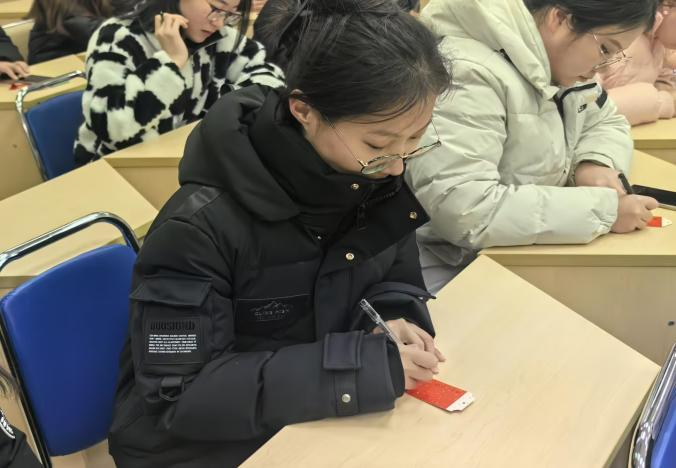 活动中,考研学子在学院精心准备的祝福卡上书写自己的心愿。一张张卡片满载着同学们对考研成功的期许。