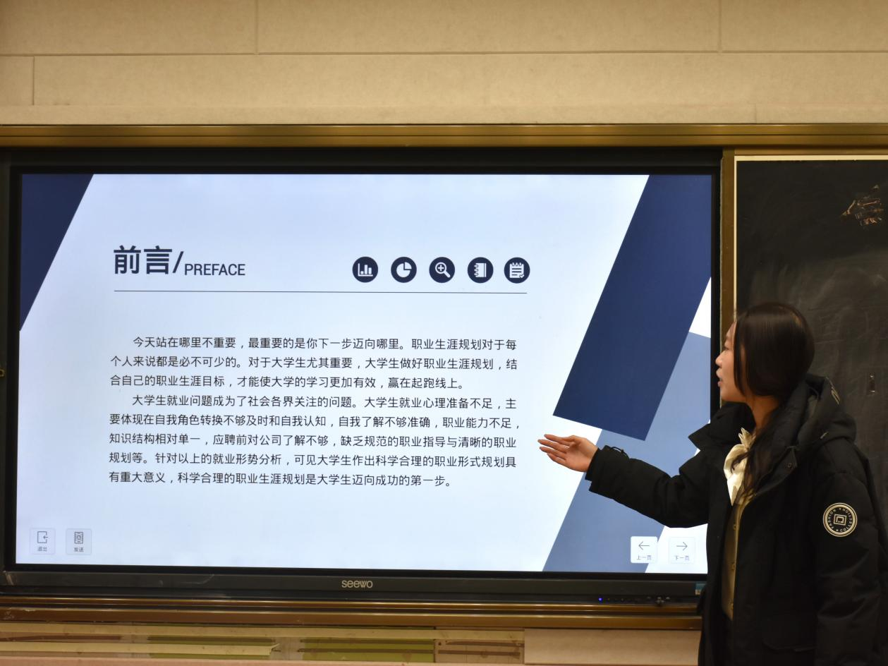 活动中,十位参赛同学依次上阵,逐一阐述了他们各自的职业愿景。他们有的深入剖析了国家相关政策导向、专业领域的未来发展趋势以及目标岗位的市场需求,展现出对国家大局与行业动态的敏锐洞察;有的则着重从个人性格特质出发,探讨了个体与职业之间的契合度,同时详细分析了实现职业目标所需的专业技能与素质要求,体现了深刻的自我认知与职业规划的精准定位。每位同学都精心规划了自己的短期、中期及长期职业目标,并分享了为实现这些目标所制定的具体行动计划。这不仅是一场关于职业梦想的展示,更是一次关于如何以实际行动追逐梦想、不断自我提升的深刻探讨。