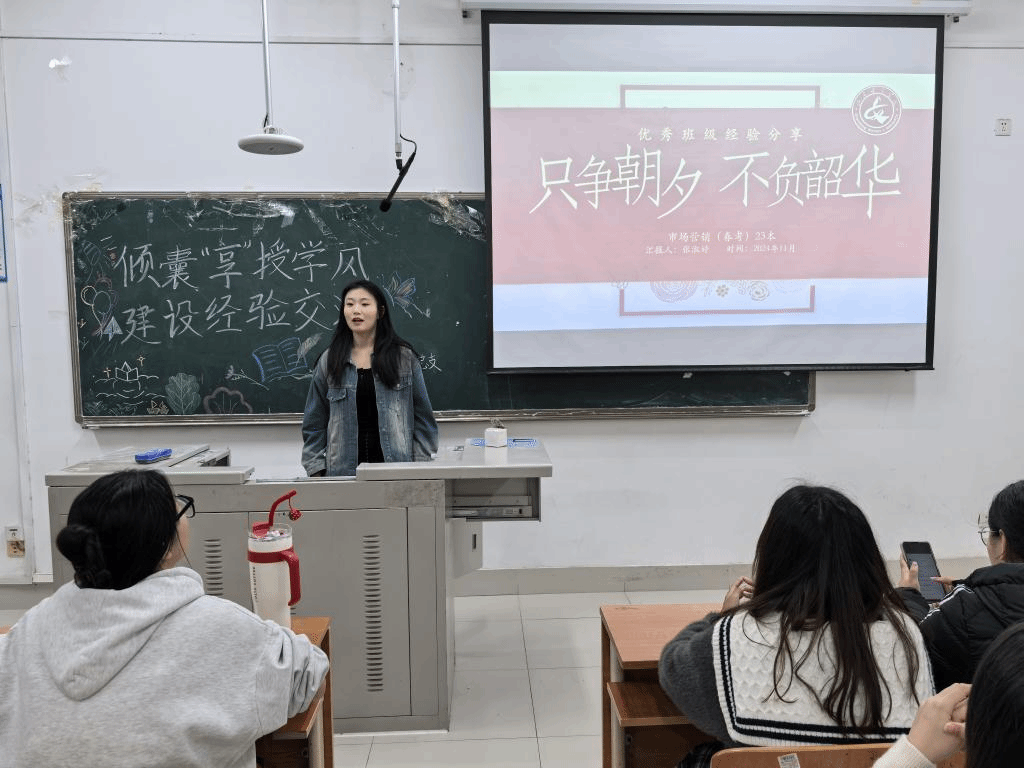 23级春考班班长张淑婷从班级目标、班级自律建设、团队协作以及班干部服务担当四个方面详细阐述了优秀班级体建设的宝贵经验,为在场的班委们树立了工作的典范,引领他们向更高的目标迈进。