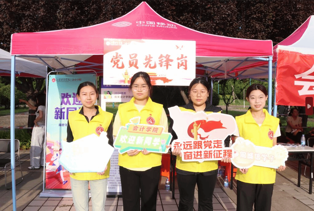 云天收夏色,木叶动秋声。9月3日,2024级新生如约而至,开启青春崭新篇章。为保障迎新工作顺利开展,会计学院党委高度重视,在迎新现场设立党员先锋岗,组织师生党员、入党积极分子积极投身迎新志愿服务活动,让党旗高高飘扬在迎新工作一线。