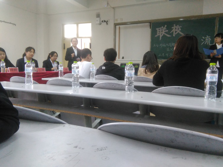 山东女子学院、山东师范大学、山东建筑大学于山建分赛场进行比赛。本场比赛邀请了山东青年政治学院、山东管理学院和山东交通学院的辩论高手作为评委。为保证比赛公平性,在整个驻济高校联赛中共用了一个辩题:代沟的责任更多在于父母/子女。我校两支队伍分别对阵山东建筑大学和山东师范大学,并且取得了优异的成绩。比赛中辩手们唇枪舌战、你来我往,针对各自的观点旁征博引,相互之间针锋相对,火药味十足,整个比赛激烈非凡,引得场下观众掌声连连。比赛结束后,各位评委分别对比赛进行了精彩的点评,令辩手明确了自己的优点和不足。